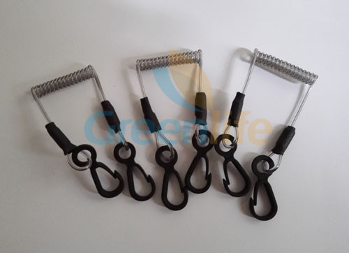 4. Ends are plastic/metal clips/hooks that can be clipped onto tools, rods, reels, cameras, pistols, etc.